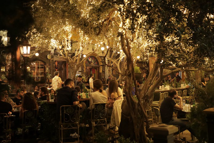 What adds a touch of identity to the spirit of Abu El Zulof are the small lights wrapped around the olive trees that seem like magical sparkling fairies, which trigger the sense of being a part of a fairy tale. The inspiration for the décor comes from the deep-rooted vintage Damascene architecture, using Kishani art on the walls, and the legendary adventures of Abu El Zulof and Oum El Zulof are